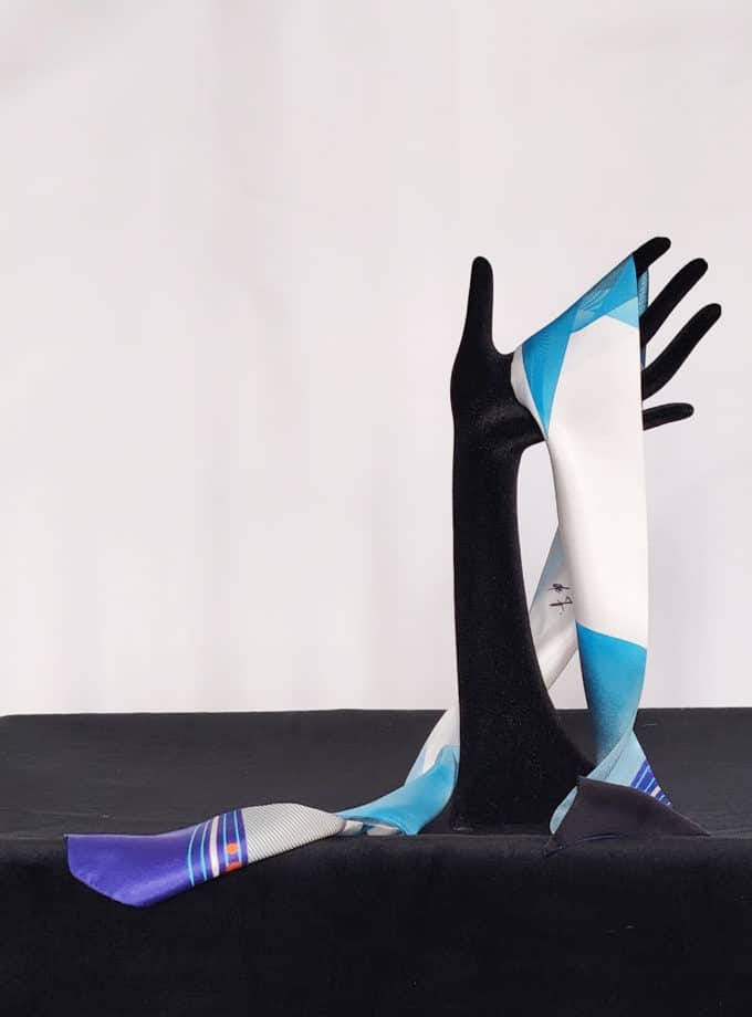 par la soie, la choisit, la travaille seule et propose au final des accessoires d'une qualité