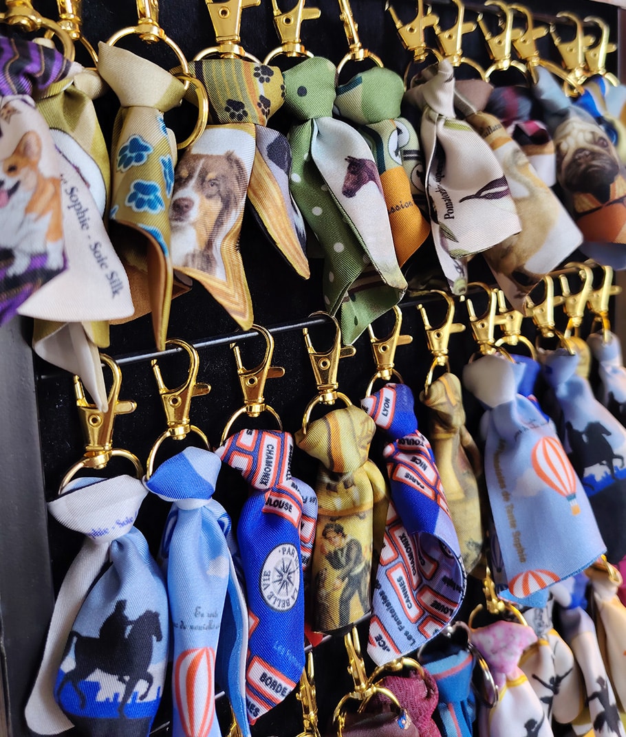 Chaque porte-clé naît d’un dessin original, avant d’être imprimé à Lyon puis confectionné dans notre atelier lyonnais avec soin. Du trait initial aux finitions textiles, la fabrication valorise un circuit court et un savoir-faire artisanal. La soie, matière noble et légère, apporte éclat et souplesse à ces accessoires pensés pour accompagner le quotidien avec élégance.